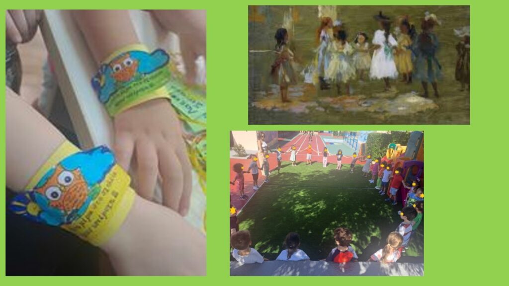 Τα μικρά μας προνήπιακια την πρώτη μέρα του σχολείου, φόρεσαν βραχιολάκια και έπαιξαν γύρω γύρω όλοι όπως ο πίνακας ζωγραφικής του Σ. Σαββίδη «Γύρω Γύρω όλοι». Καλή Σχολική Χρονιά!!!