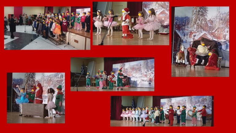 Το σχολείο μας πραγματοποίησε τις φετινές χριστουγεννιάτικες γιορτές με μεγάλη επιτυχία και πολλή αγάπη. Το Νήπιο και το Προνήπιο γιόρτασαν μαζί, η Α’, Β’ και Γ’ τάξη παρουσίασαν τη δική τους ξεχωριστή γιορτή, ενώ οι μαθητές της Δ’, Ε’ και ΣΤ’ τάξης ένωσαν τις φωνές και τα ταλέντα τους σε μια όμορφη και ουσιαστική εκδήλωση.