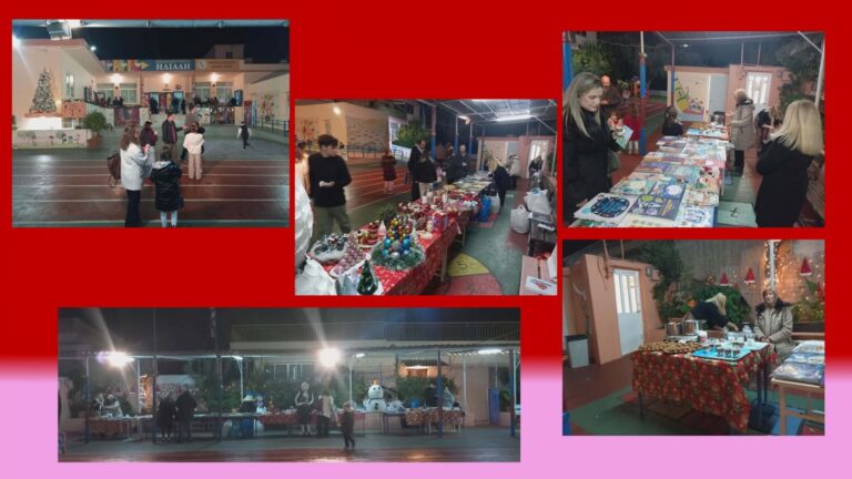 Στον χώρο του σχολείου λειτούργησε παζάρι με βιβλία και χειροποίητα χριστουγεννιάτικα στολίδια, τα οποία είχαν δημιουργήσει με πολλή αγάπη οι μαθητές μας μαζί με τους γονείς τους. Τα έσοδα από το παζάρι θα διατεθούν για τη στήριξη οικογενειών που έχουν ανάγκη, δίνοντας έτσι στο μήνυμα των Χριστουγέννων το αληθινό του νόημα: την προσφορά και την αλληλεγγύη.