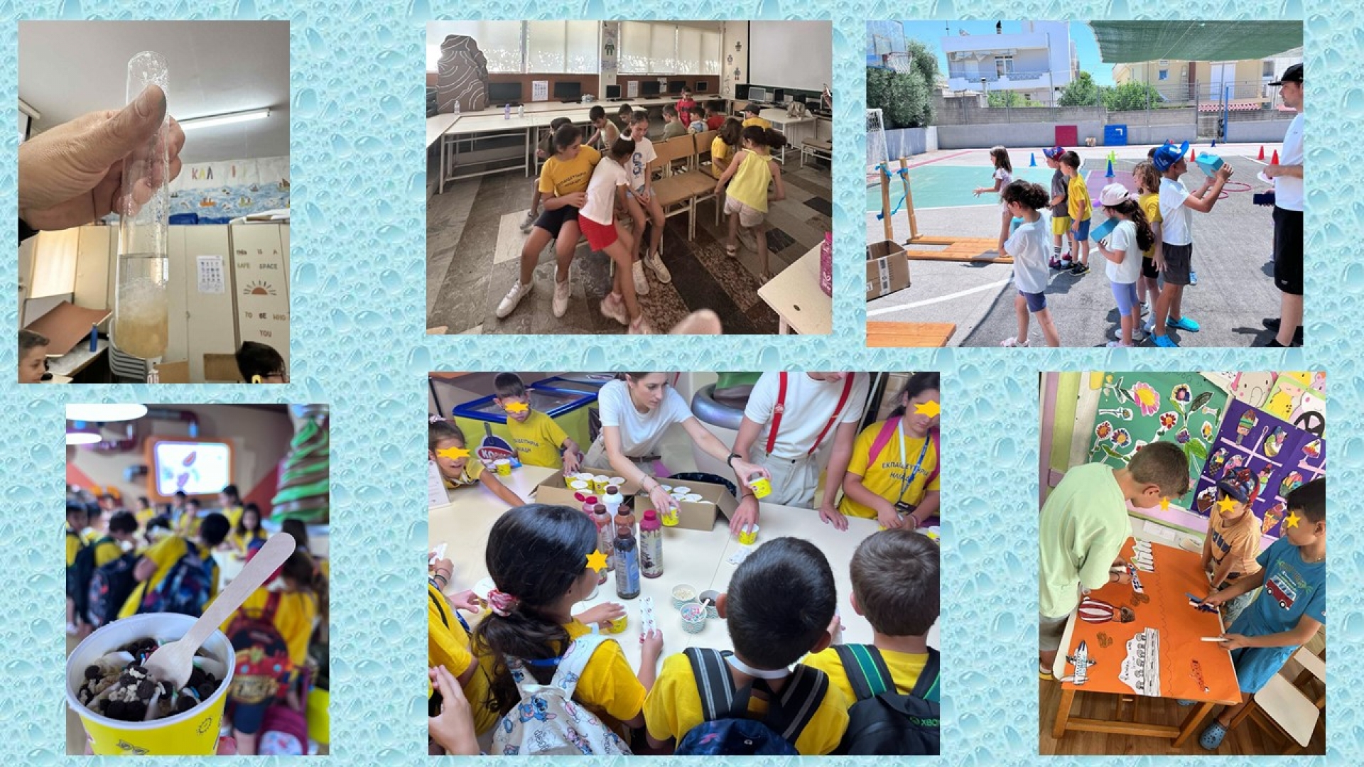 Μέσα σε αυτές τις ξεχωριστές ημέρες, είχαμε την ευκαιρία να ζήσουμε ποικίλες, απολαυστικές δραστηριότητες, που μας ενθουσίασαν! Δοκιμάσαμε χαλαρωτική και αναζωογονητική γιόγκα, που μας βοήθησε να συγκεντρωθούμε και να ξεκινήσουμε τη μέρα μας με ηρεμία. Κάναμε ένα δροσερό και τρελό μπουγέλο, που γέμισε την αυλή με γέλια, φωνές και παγωμένες σταγόνες χαράς!