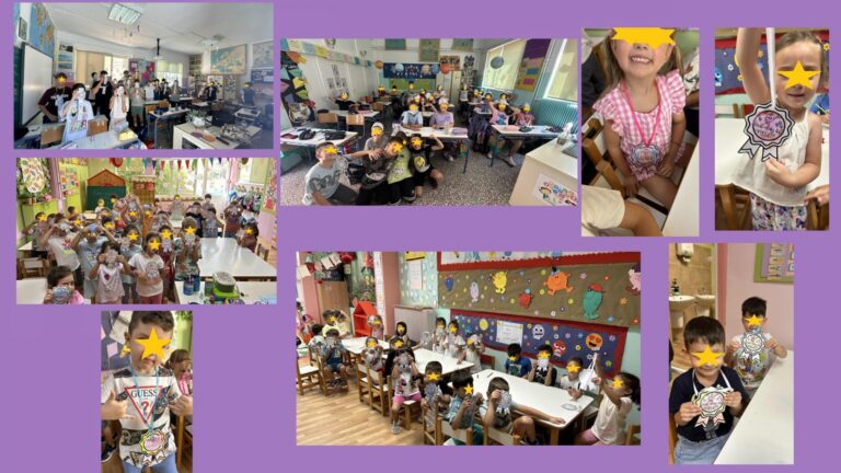 Την πρώτη μας μέρα συναντηθήκαμε όλα τα παιδιά μαζί! Νήπια, προνήπια, αλλά και μαθητές από την Ε΄ και ΣΤ΄ Δημοτικού. Στόχος μας ήταν να γνωριστούμε καλύτερα και να νιώσουμε όλοι μέλη της ίδιας μεγάλης ομάδας. Ξεκινήσαμε με παιχνίδια γνωριμίας ΣΤΑ ΑΓΓΛΙΚΆμέσα από τα οποία μάθαμε τα ονόματα και ανακαλύψαμε κοινά ενδιαφέροντα. Στη συνέχεια, συνεργαστήκαμε σε μικρές ομάδες και φτιάξαμε κατασκευές με πολύχρωμα υλικά, αφήνοντας τη φαντασία και τη δημιουργικότητά μας να μας καθοδηγήσουν. Η ατμόσφαιρα ήταν γεμάτη ενθουσιασμό, χαμόγελα και συνεργασία, ενώ τα μεγαλύτερα παιδιά βοήθησαν τα μικρότερα, δημιουργώντας μια όμορφη σχέση αλληλοϋποστήριξης. Έτσι, η πρώτη μέρα κύλησε με χαρά και έθεσε τις βάσεις για τις δραστηριότητες που θα ακολουθήσουν.